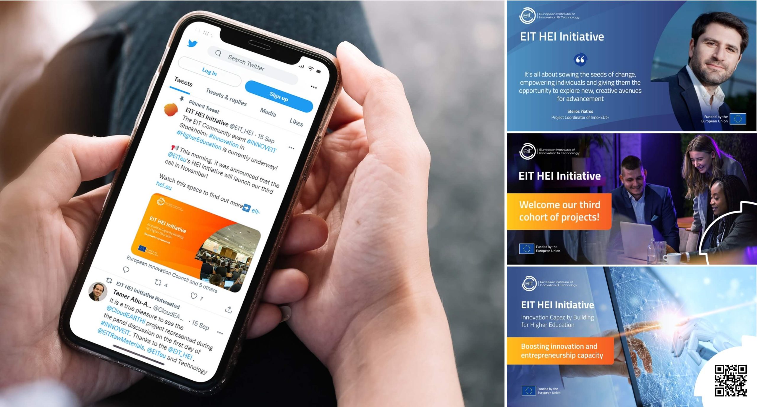 We developed the initiative’s visual identity using a combination of stock images and real-life photos from EIT HEI Initiative events to ‘give a face’ to the initiative.